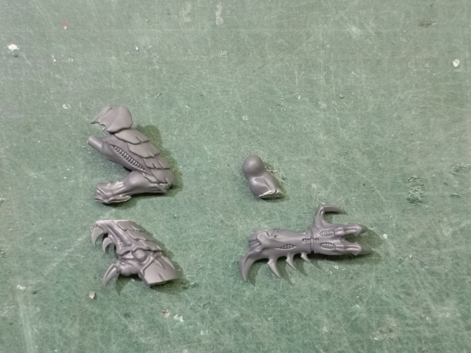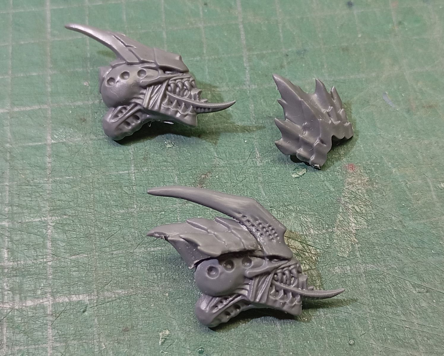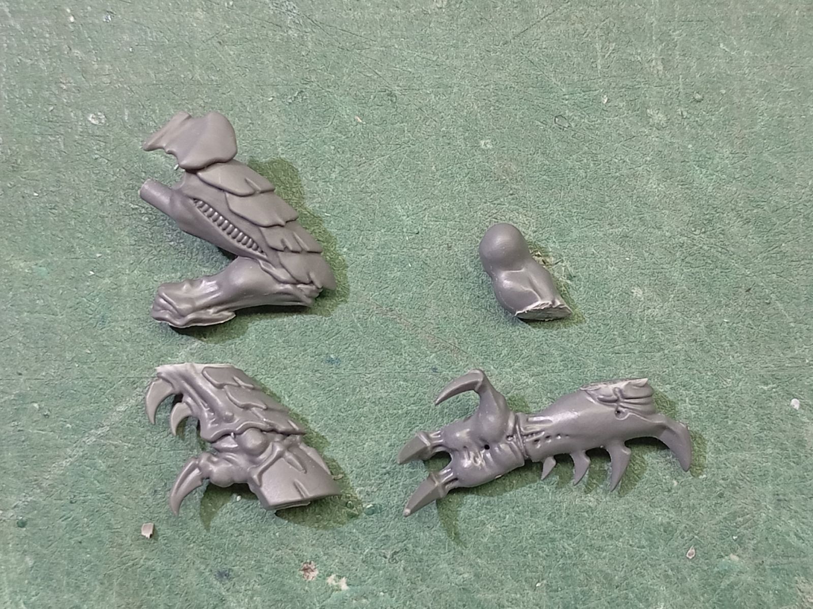 - Para la cabezas, reaprovecho las de Gárgolas para poder cambiar la orientación y diferenciar los Guerreros de los Primus; se pueden aprovechar las crestas de las cabezas originales para ponérselas a las cabezas de Gárgola, pero como los Élitros tienen menos armadura, la cabeza sin cresta ya les va bien.